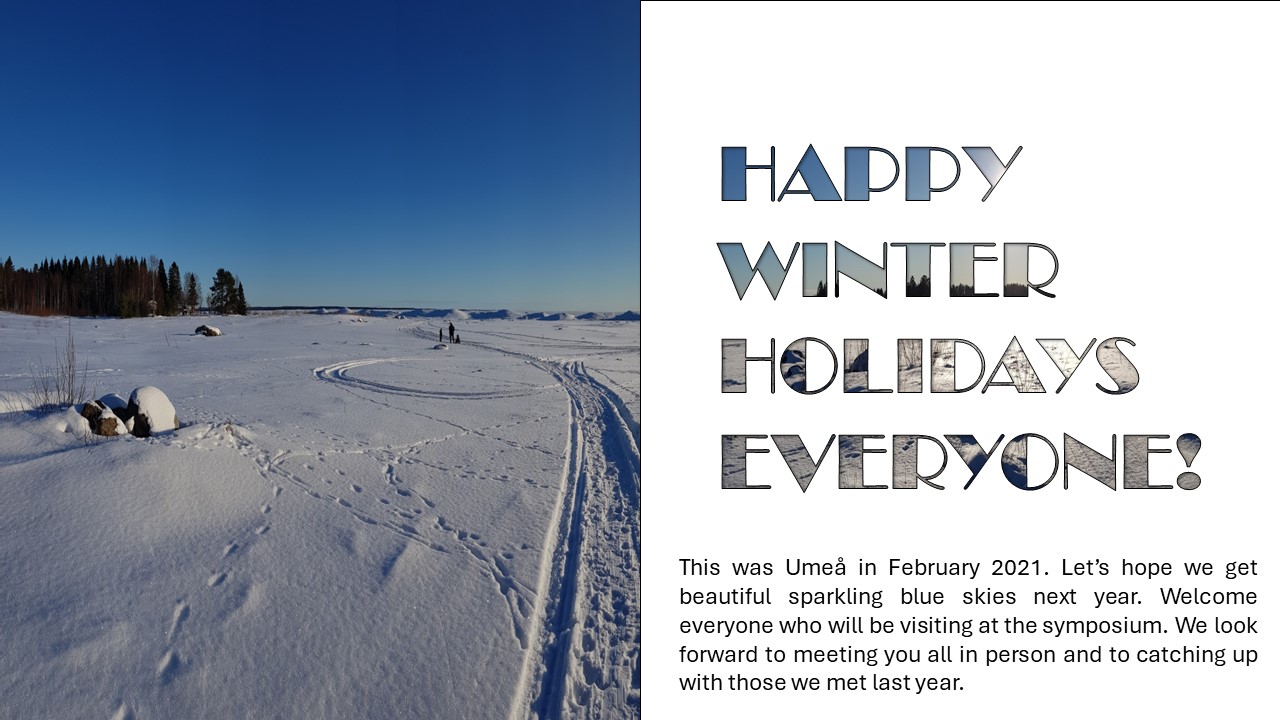 We are immensely grateful to all the symposium organizers for their tireless efforts, meticulous planning, and unwavering dedication in making the symposium a success. Through your hard work, you have fostered a space for valuable discussions, knowledge sharing, and meaningful connections. Your passion and expertise have helped bring our community together and have contributed significantly to the success of our collective endeavours. Thank you for your exceptional work in organising the symposium in Umeå, soon to come in the new year.